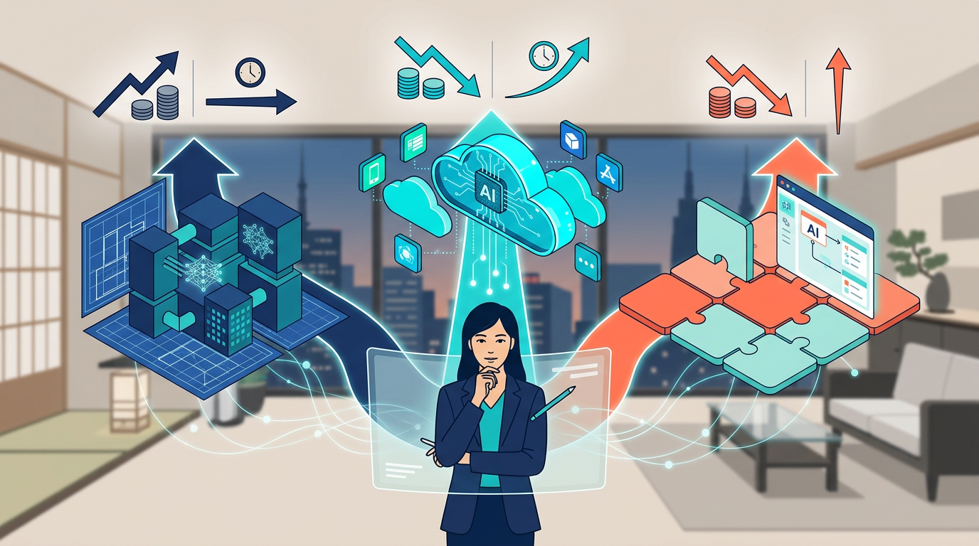 新しいシステムを導入しようとするとき、多くの中小企業の経営者は同じ壁にぶつかります。「スクラッチで作るべきか、既存のSaaSを使うべきか、それともノーコードツールで自社で作るか」。費用、スピード、柔軟性……それぞれにメリットがあり、どれが正解なのかわからないまま、結局は営業担当者の提案に従って決めてしまう——そんなケースは珍しくありません。